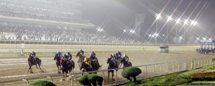 서울경마공원에서 펼쳐지고 있는 야간 경마경기. 열기가 뜨겁다.