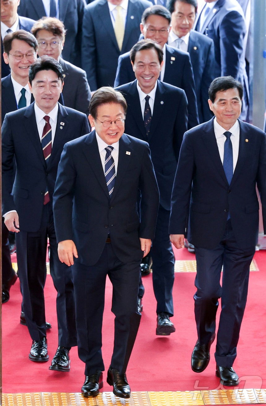 (서울=뉴스1) 국회사진기자단 = 이재명 대통령이 26일 오전 서울 여의도 국회에서 정부의 2차 추가경정예산(추경)안 제출과 관련해 시정연설을 하기 위해 이동하고 있다. 2025.6.26/뉴스1